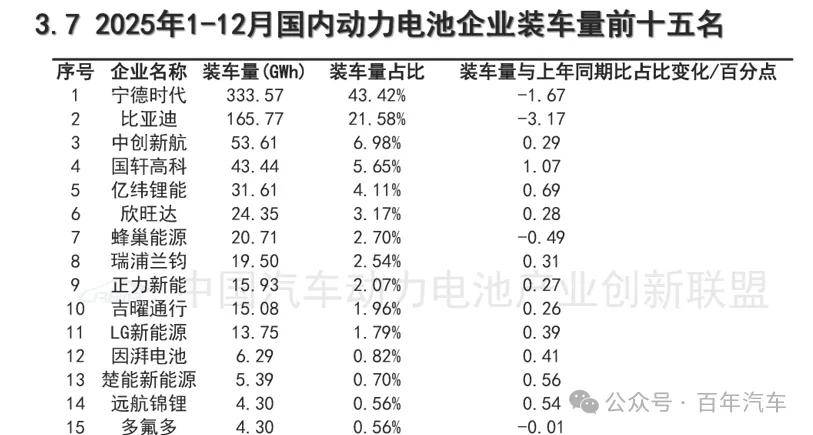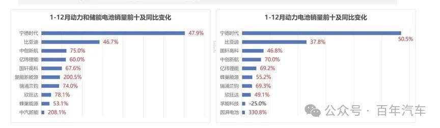1-12月,动力电池销量累计同比增长51.8%,中创新航、亿纬锂能、蜂巢能源、瑞浦兰钧、因湃电池等均超过平均增长速度。