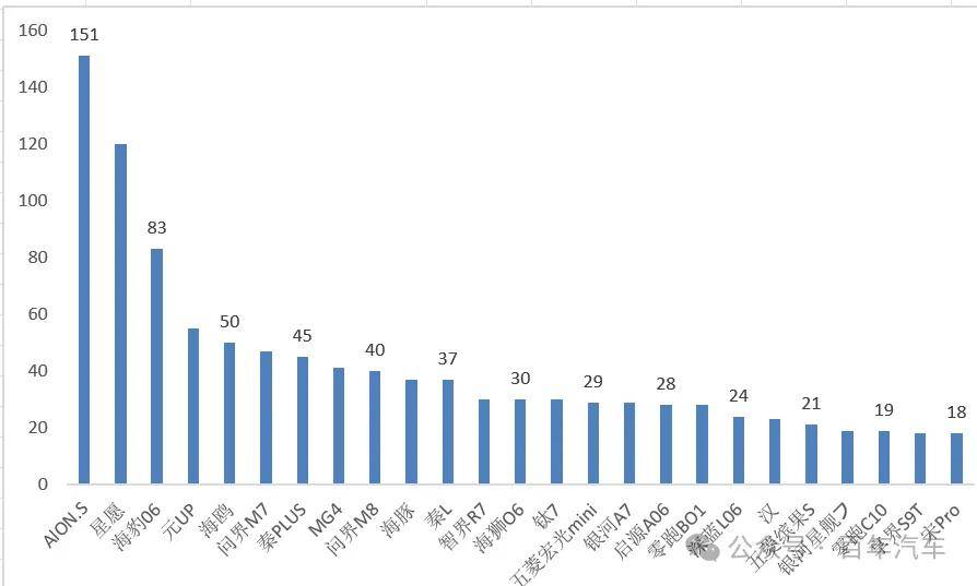 3、12月份新能源汽车销量——车型结构(排名前20车型)