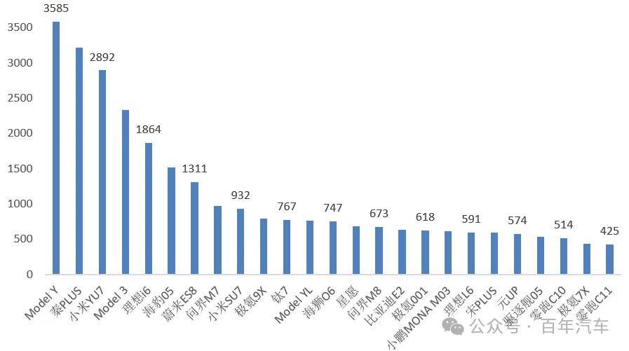 3、12月份新能源汽车销量——车型结构(排名前20车型)